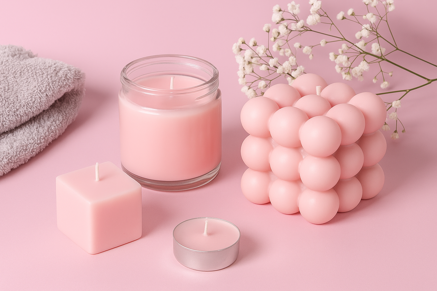 Every candle is hand-poured using a natural blend of soy and sometimes coconut wax. For certain designs, we also use gel wax to create a unique and stylish look. All of our candles feature a cotton wick, ensuring a clean and even burn.